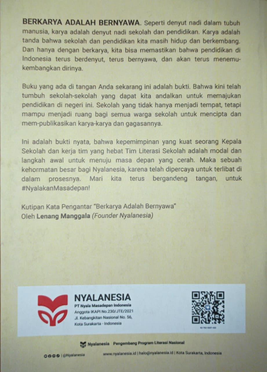 Program Literasi Digital ini tercipta, berkat kerja sama antara Sekolah dan Nyalanesia. Melalui program Gerakan Sekolah Menulis Buku Nasional (GSMB Nasional) yang diselenggarakan Nyalanesia, kami juga berhasil mendapatkan penghargaan Sekolah Aktif Literasi Nasional.